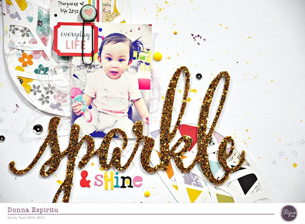 Using different colored pens, I wrote the words sparkle and shine around the page to finish it off.