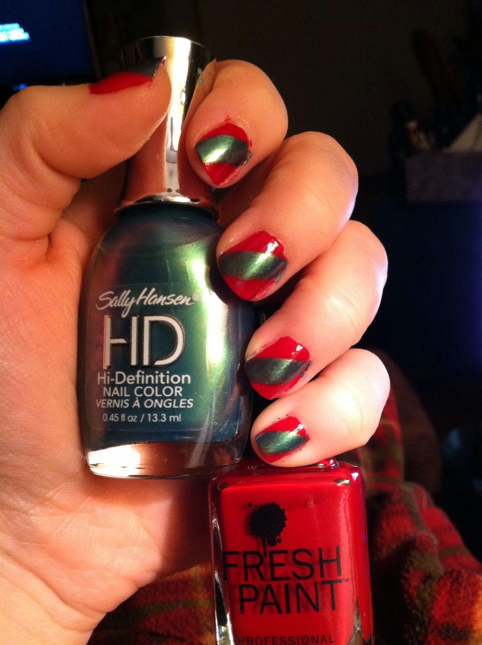 Next use a green color as an accent. I am using Sally Hansen's "hi-def" green.