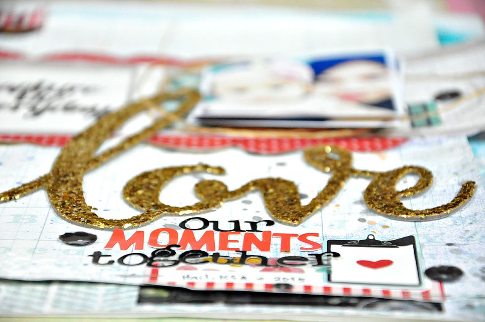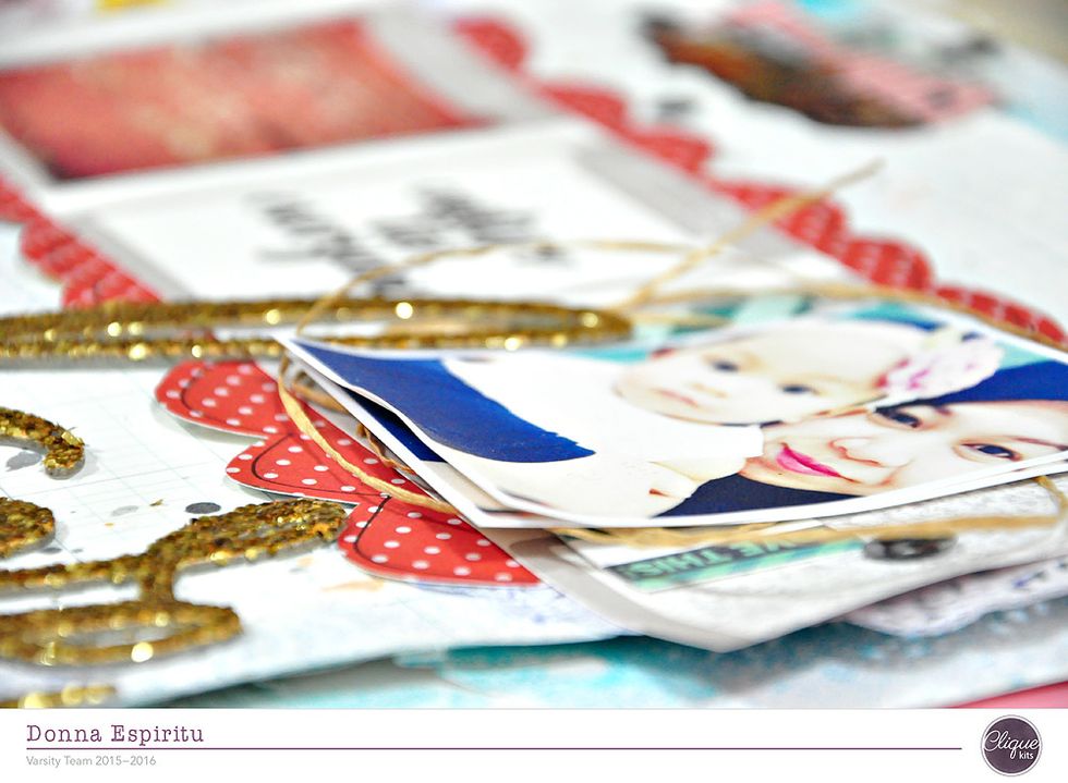Layer a couple of photos and put it on top of a hemp or twine or thread. Then embellish the rest of your page