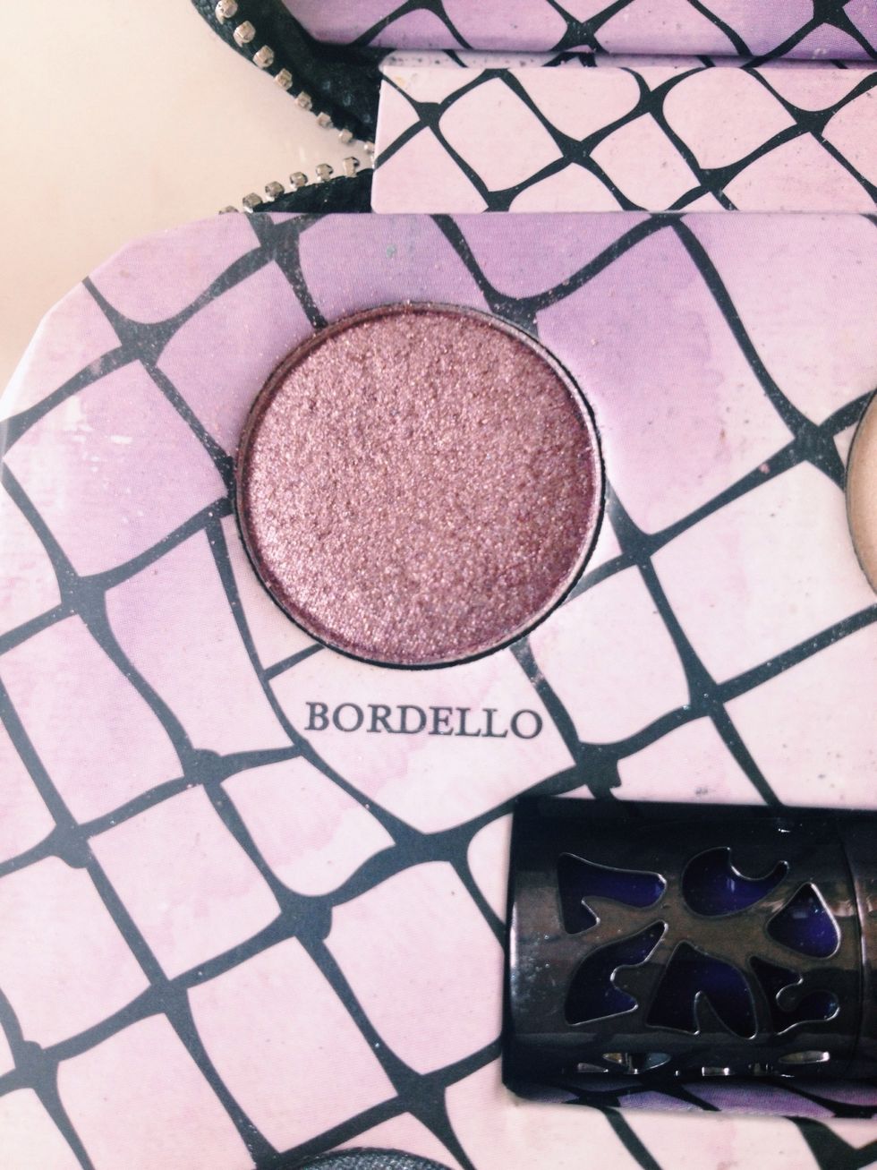 I applied the brown copper color AC/DC in the crease and blended downwards. Then I applied the pink coppery shade in the crease and blended upwards.