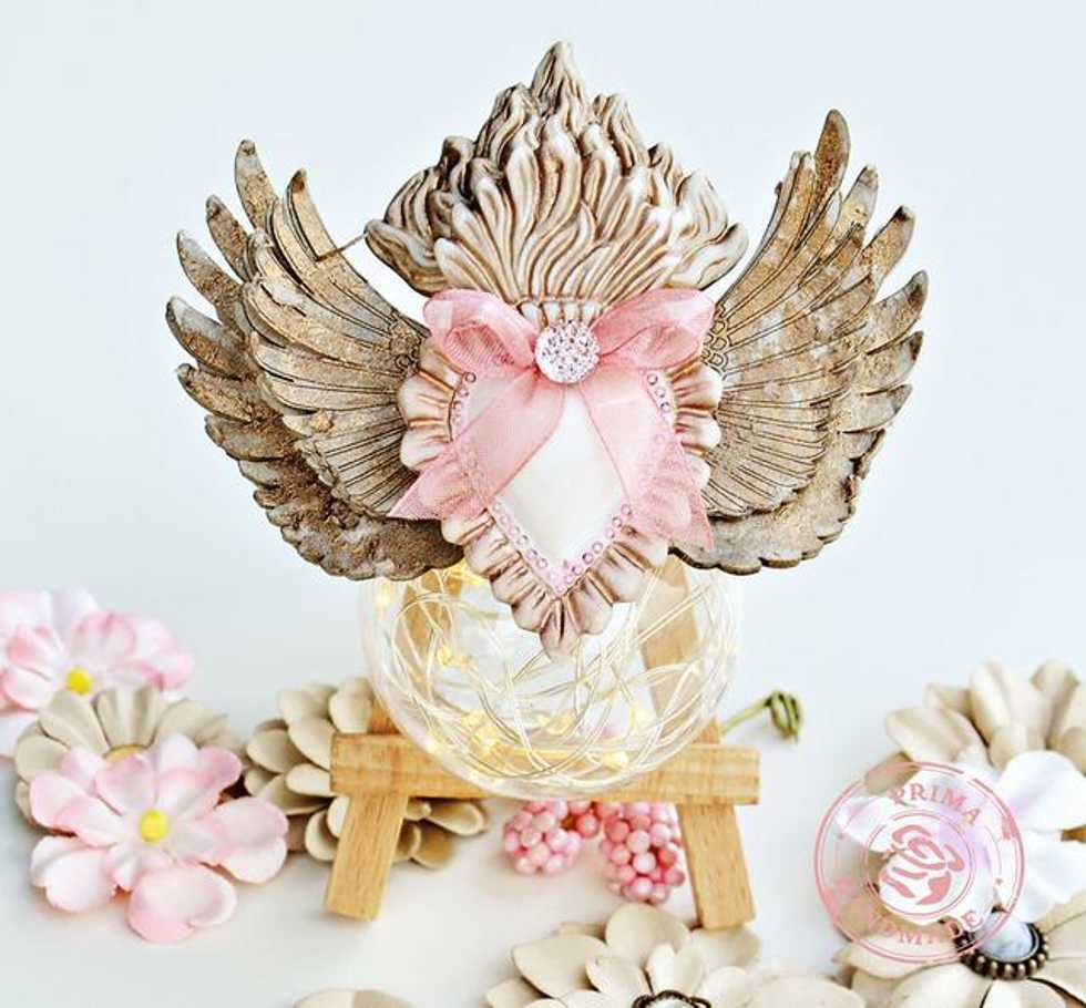 Mix Rust Mica Powder with a bit of water & paint the Flaming Heart resin pieces. Do not paint the center heart. Next use use R&A wings or cardboard wings. Paint those with the Rust Mica mix as well.