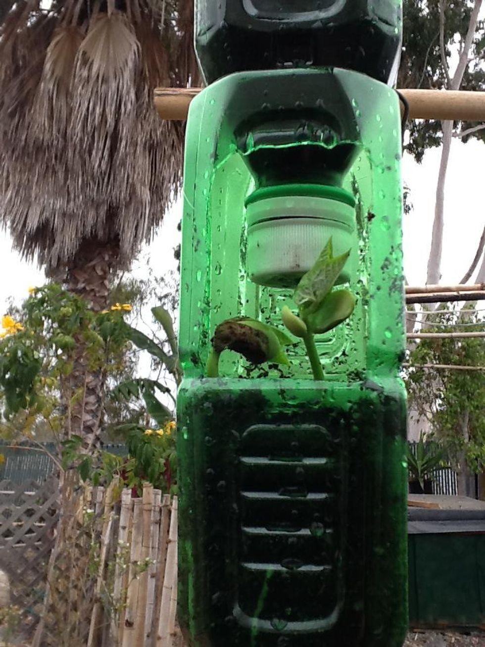 Put the cap back on that bottom bottle, it serves as a filter so the soil doesn't fall through.