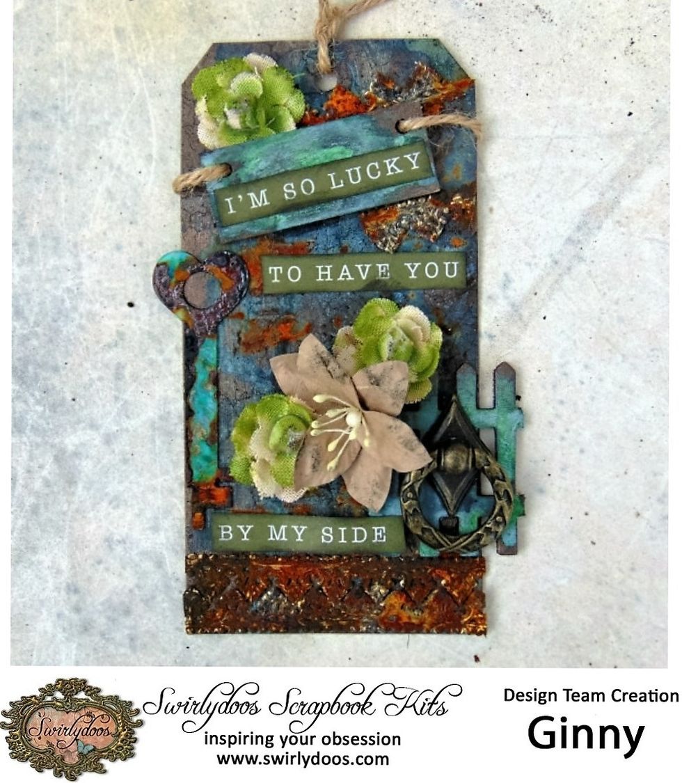 Then splodge a few random spots of the Iron paint on my Tag and spritzed with the Patina solution. I only did one coat of this but did it quite thickly.