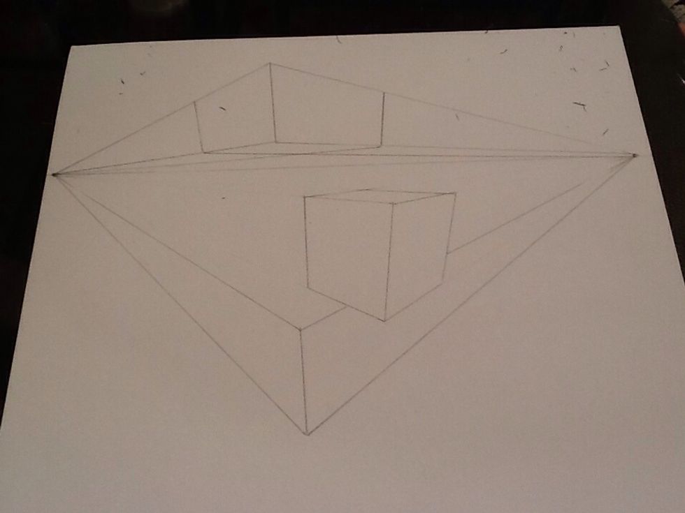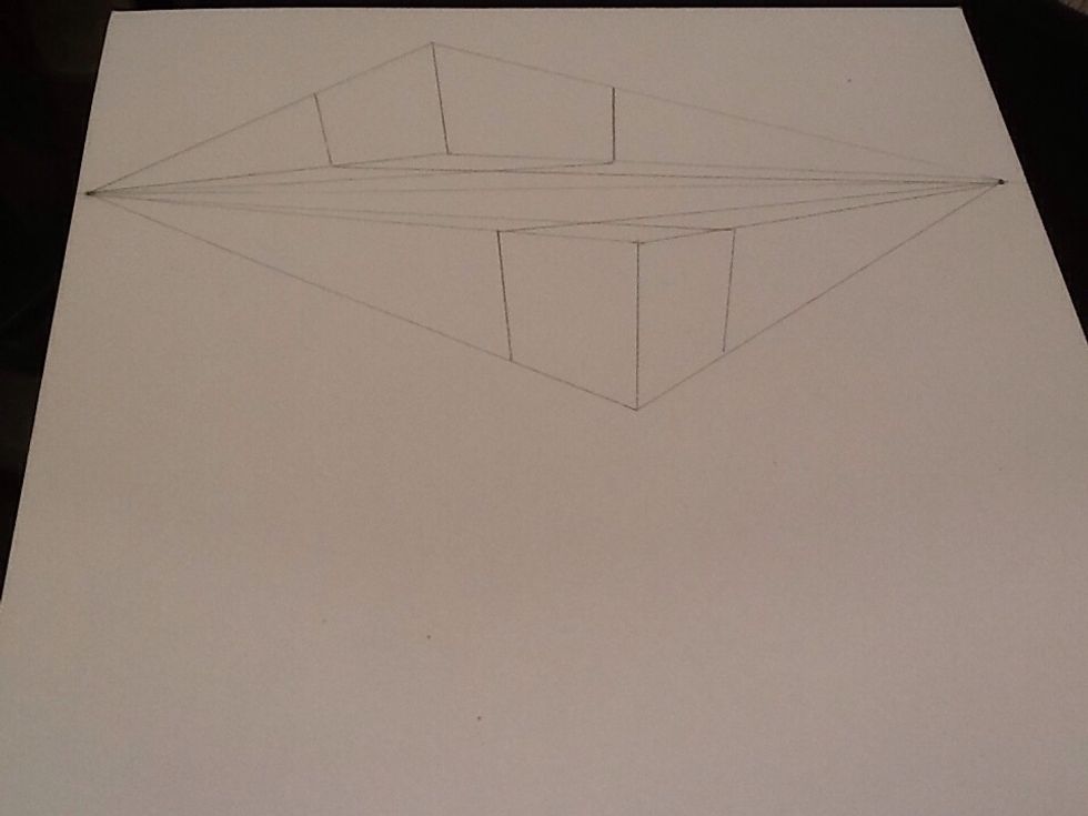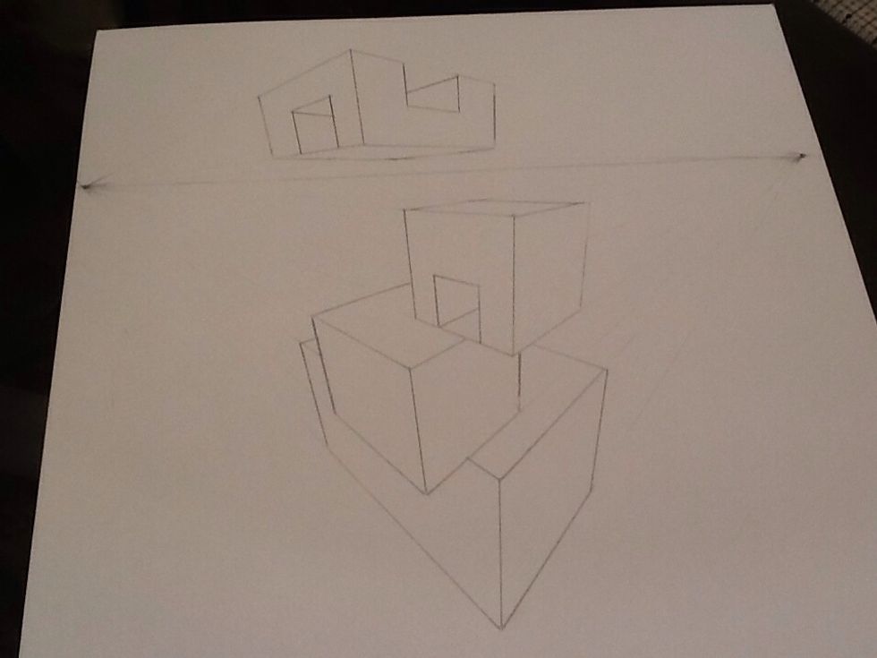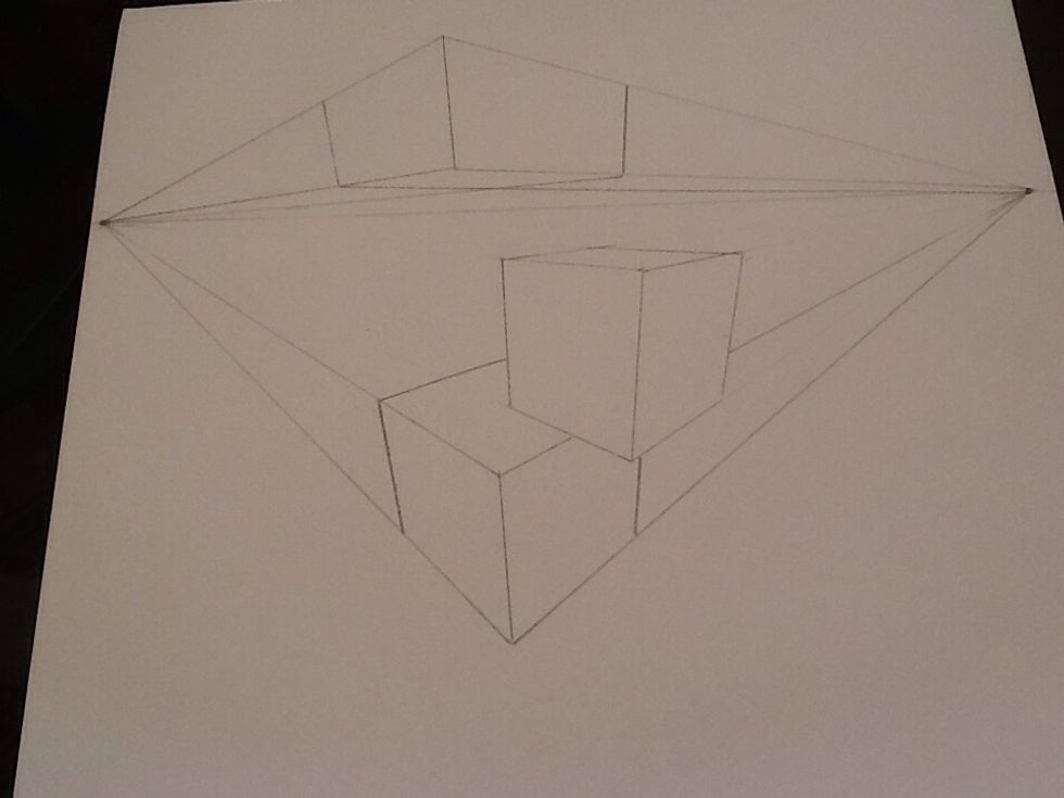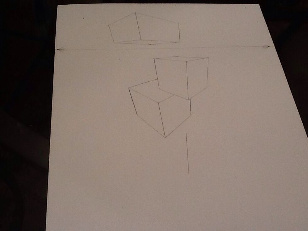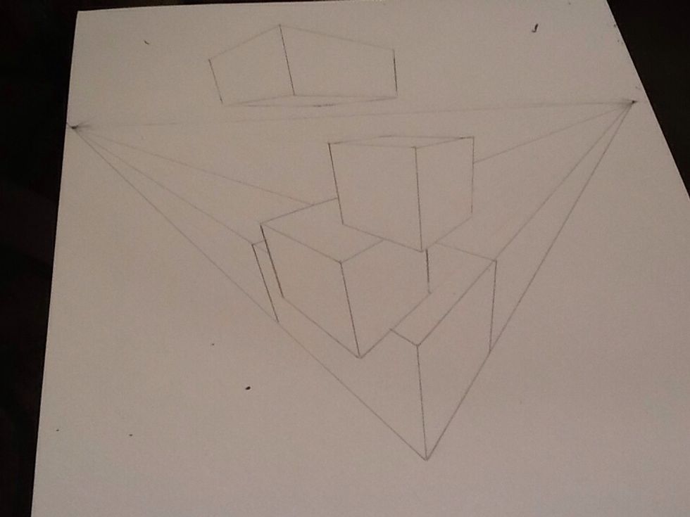 To make your boxes look stacked, line your ruler up with the vanishing points but do not draw threw the previous box. All the extra lines will get confusing.