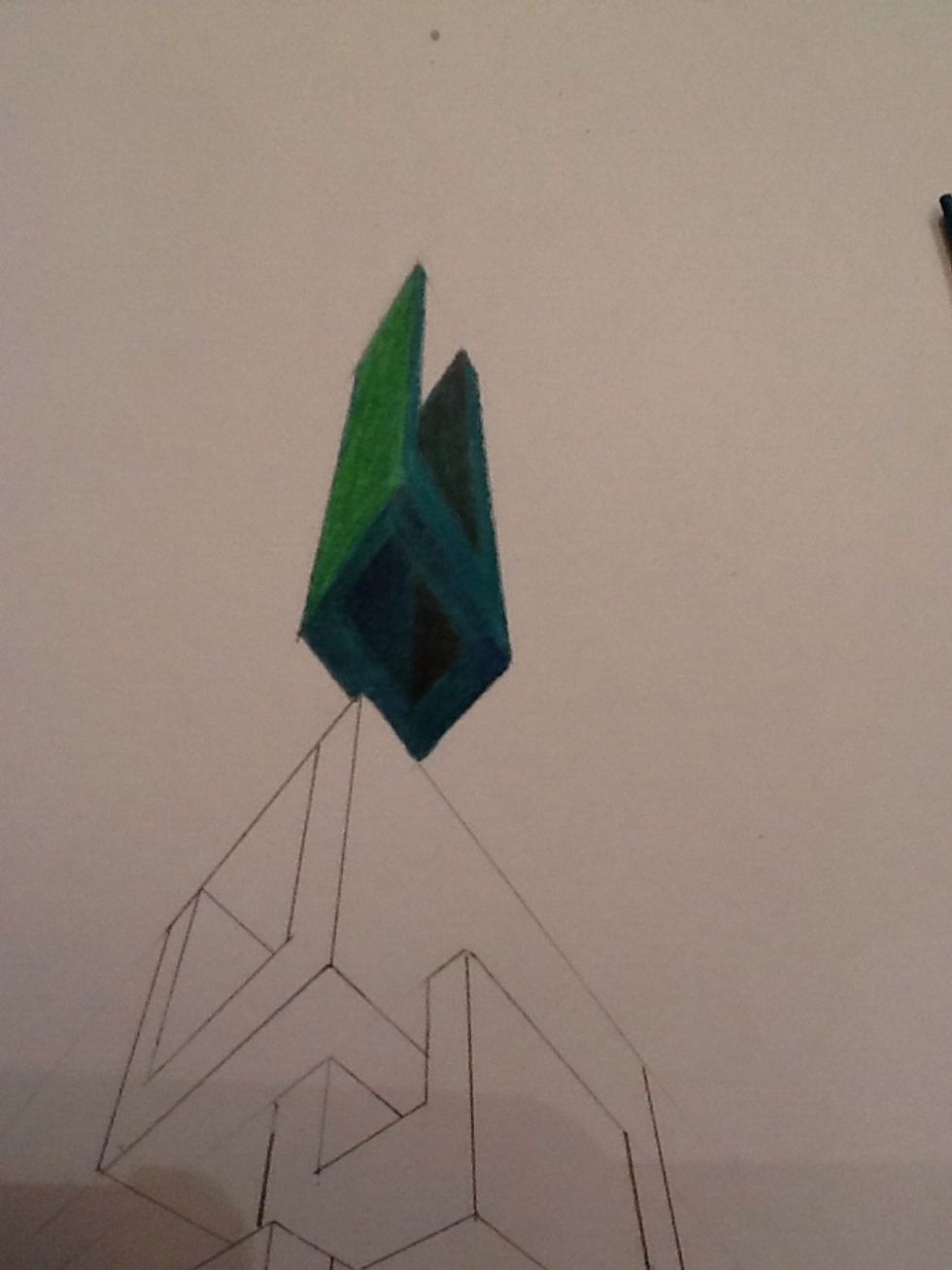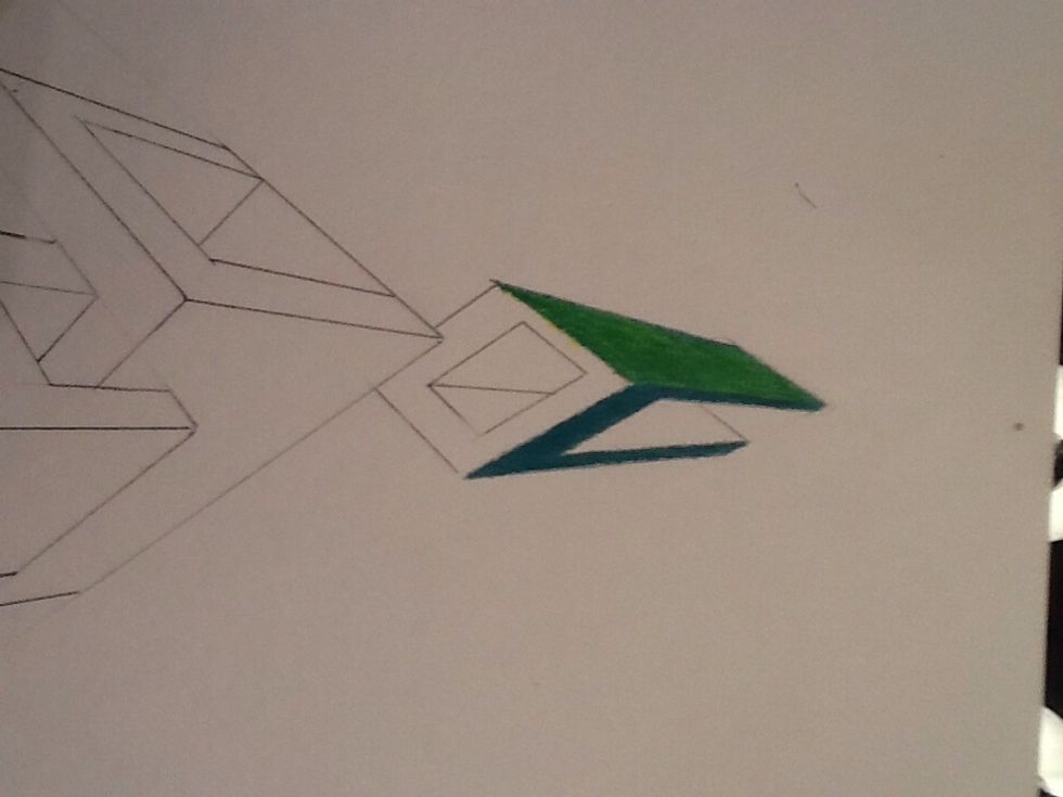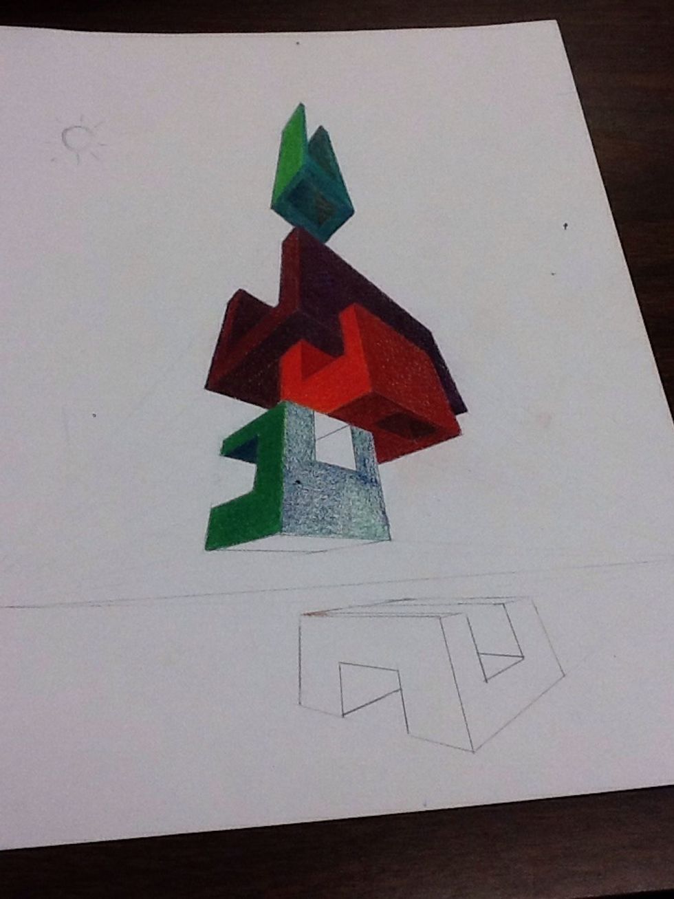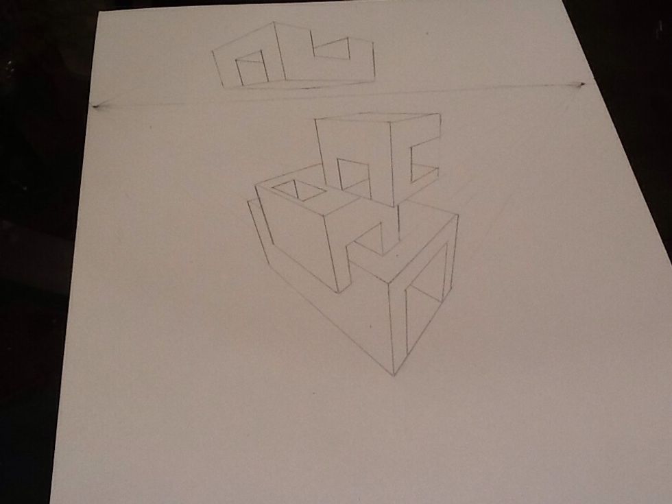 To make your boxes look stacked, line your ruler up with the vanishing points but do not draw threw the previous box. All the extra lines will get confusing.