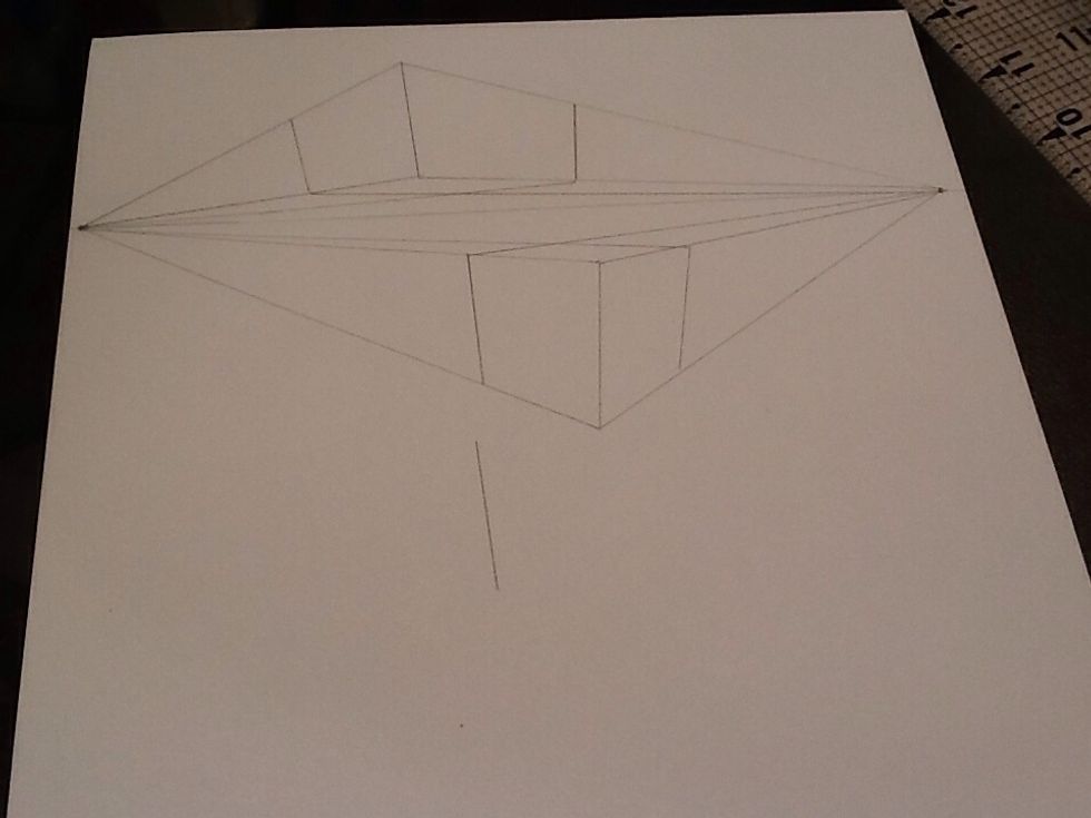 To make the sides of your box, line your ruler up with the 3rd vanishing point and draw a line on both sides of your original line. This is where you decide how wide your box is.