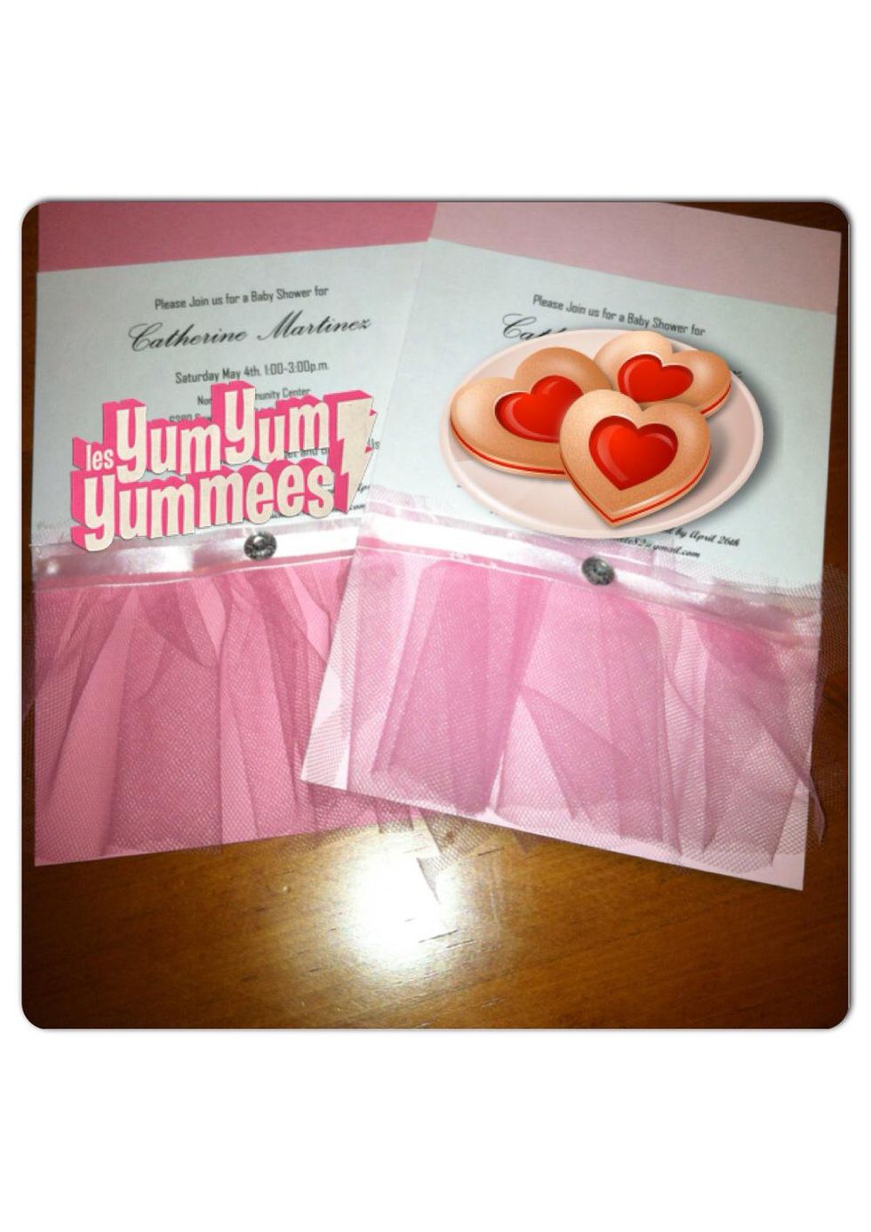 Type the invitation and print on the white card stock. You have to keep in mind the 40% of the bottom of the card will be under the tulle. So make sure the text fits on the top half.
