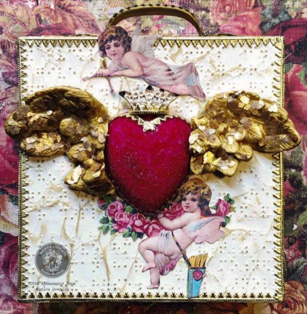 Paint the heart with Magenta Acrylic Paint & the wings with Gold After the paint dries, apply a coat of Transparent 3D Matte Gel to the heart. Sprinkle Micro Beads in Blush, gold Leaf Mica Flakes