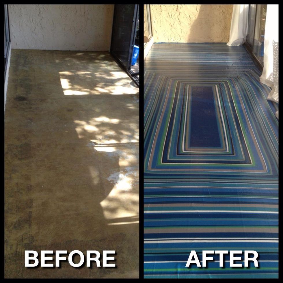 My bland floor before and my new floor after! FYI: I ordered the tape from Findtape.com and I had to reorder 4 times because it obviously took way more than my "guesstimates".