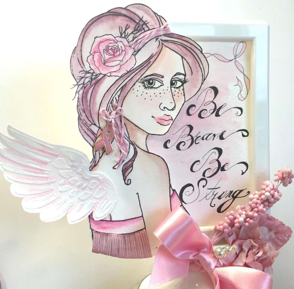 Now you are ready to put it together. Adhere to the frame, tie a bow and add your sentiment!