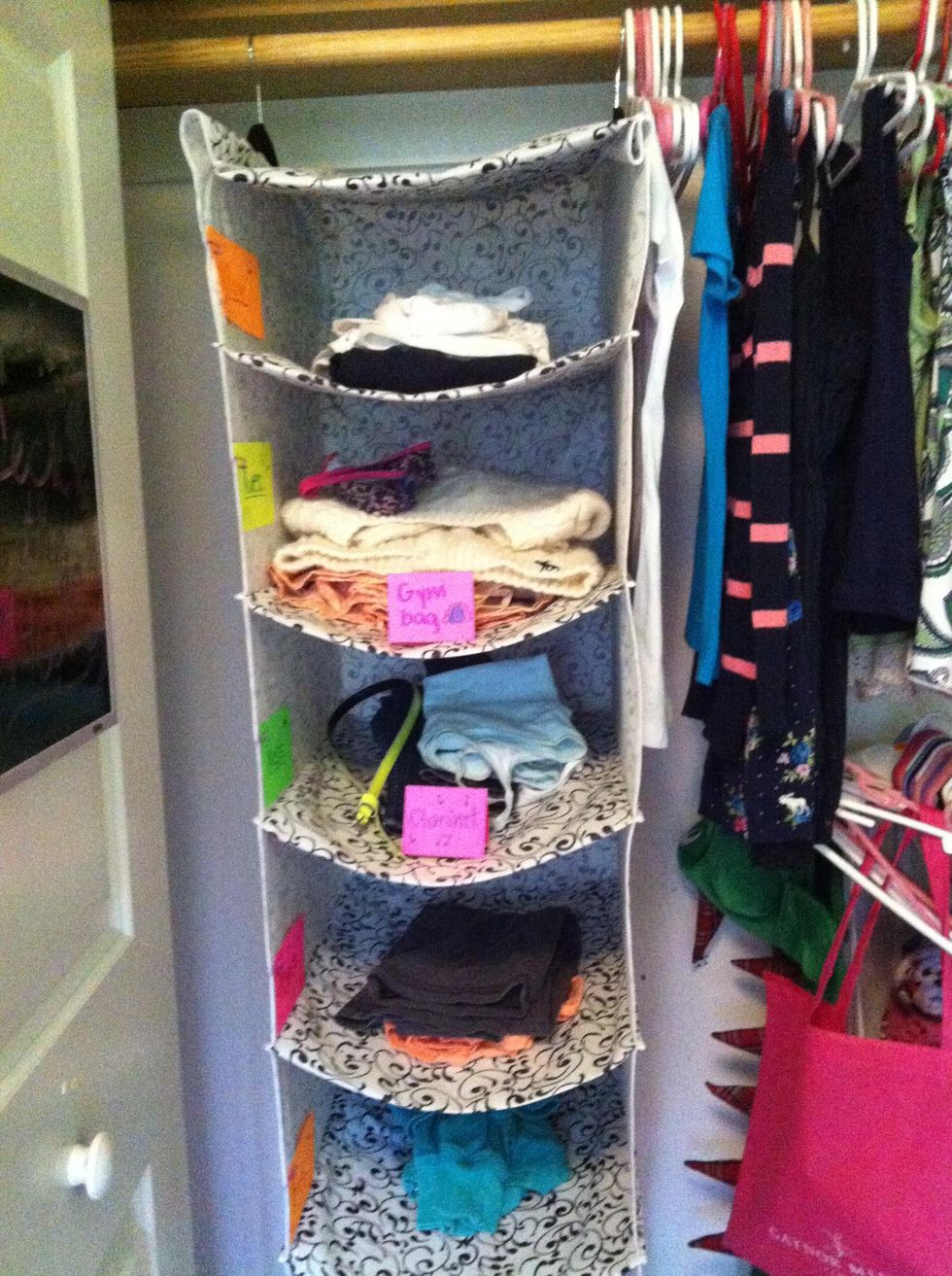Buy a hanging shoe storage "thingy" at any store. I got this one at Target (and look how stylish :O)