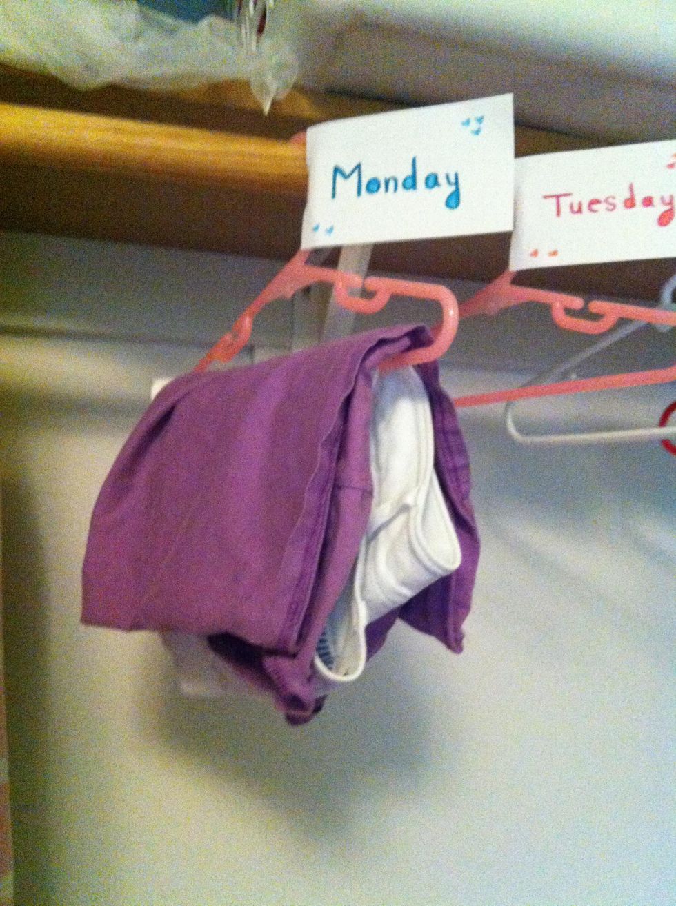 Plan and hang your outfits every Sunday (after you check your local weather for the week...don't want to plan shorts when it's going to be 50 degrees!).