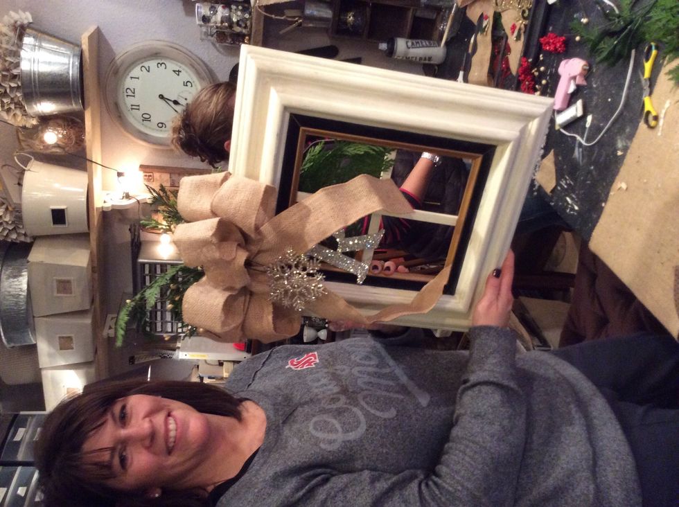 Flip window over, add a sprig or two more of the cedar clippings then embellish as desired. Use decorative picks, monograms, pine cones, holly, bows, etc.