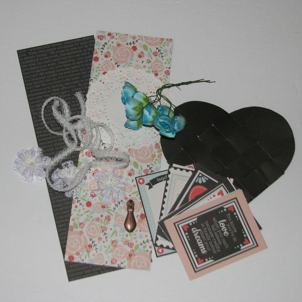 With 3 x 4 cut outs from XO paper collection. I created valentine cards to put in side Heart.