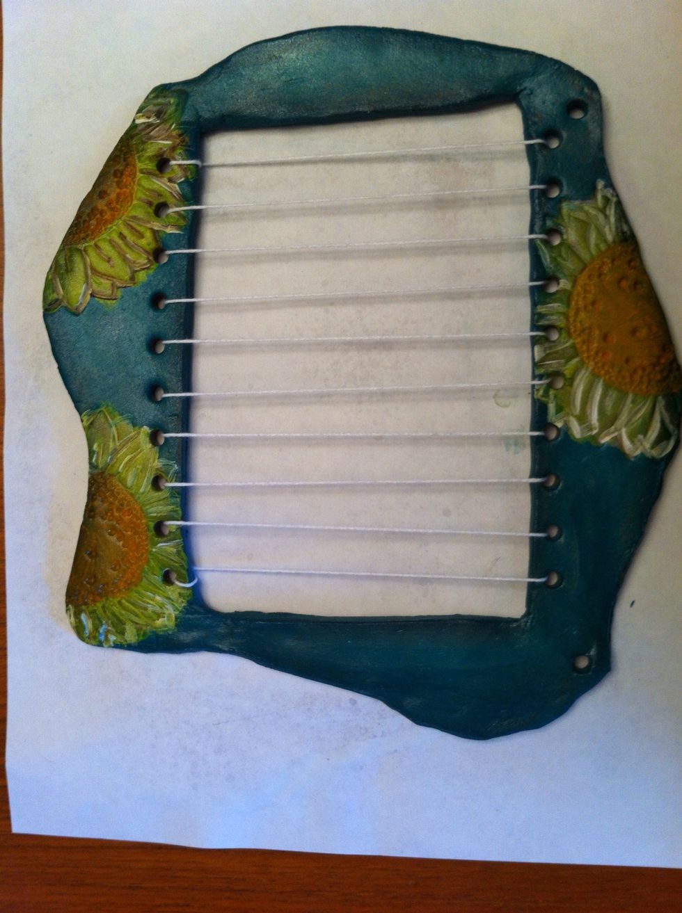 The clay leaves no residue on the stamp. Easy!! At this point you have to decide, is this a frame or a loom. If only a frame, stop here and let dry. Then move to the painting slide.