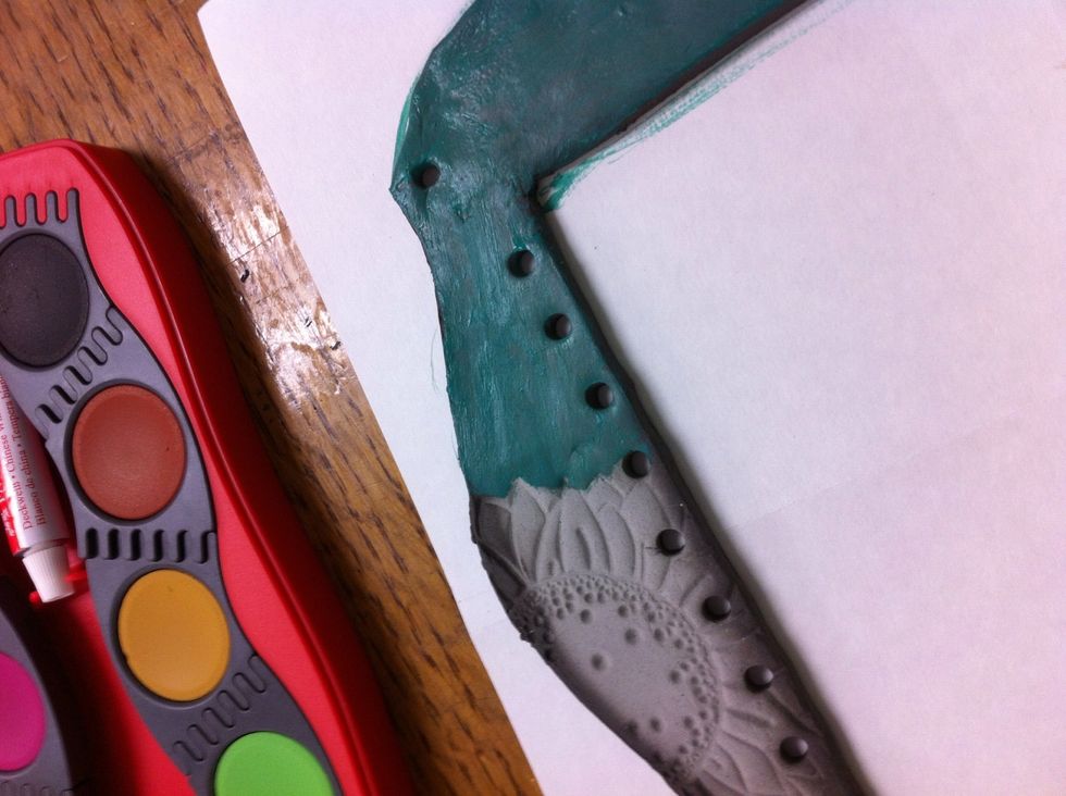 I added white and purple highlights. It took 3 coats of green on the light portions on the clay. Don't flip and forget, check to make sure the top is exposed to the air to dry for painting ease!