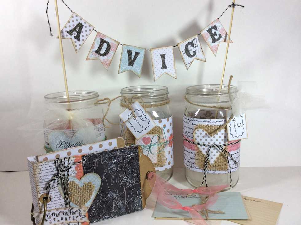 Set jars and advice cards out at shower, wedding and reception for a fun, interactive decor and keepsake piece all in one!!