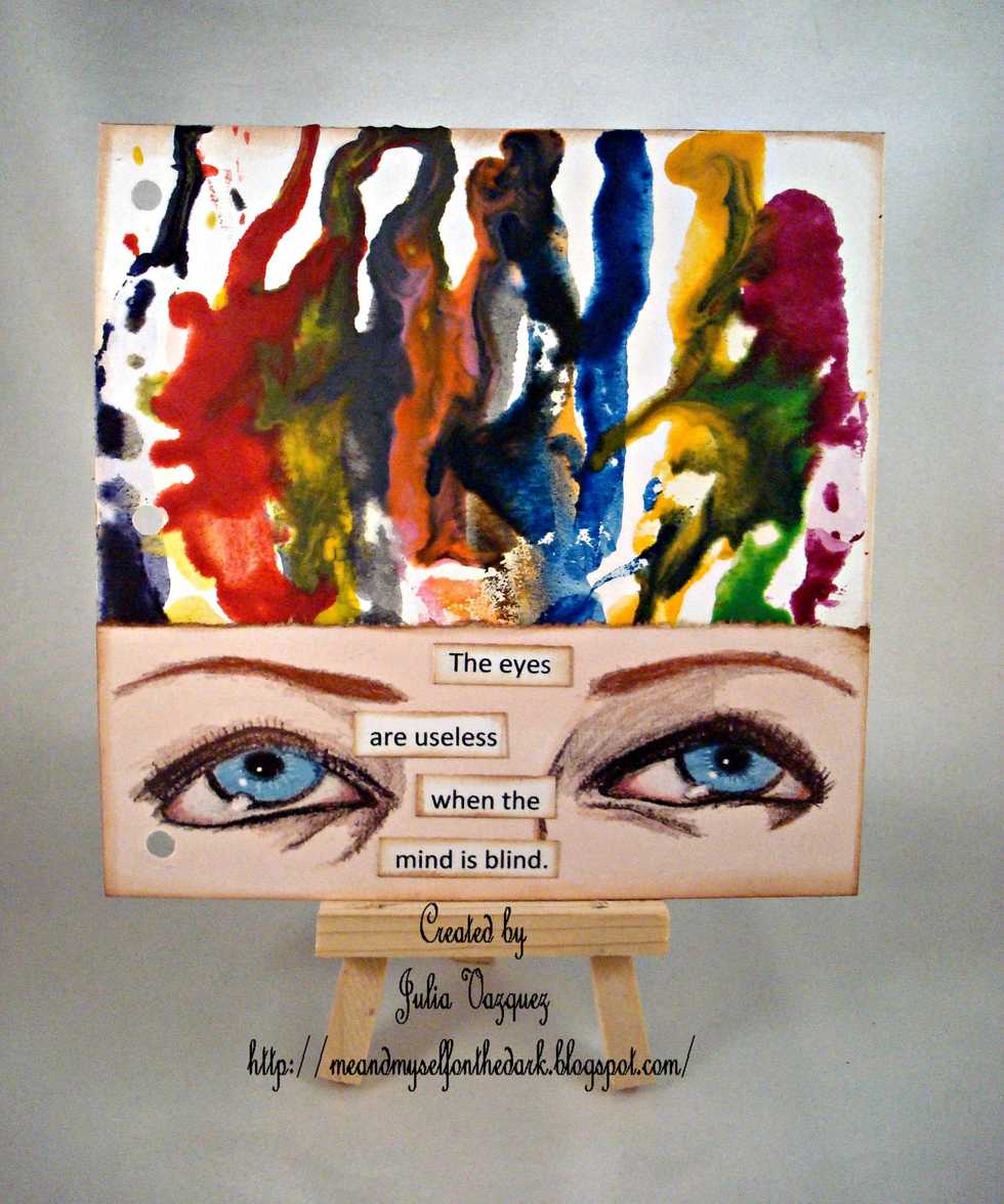 Add distress ink to the border of the sentiment. use gel medium to adhere to page.