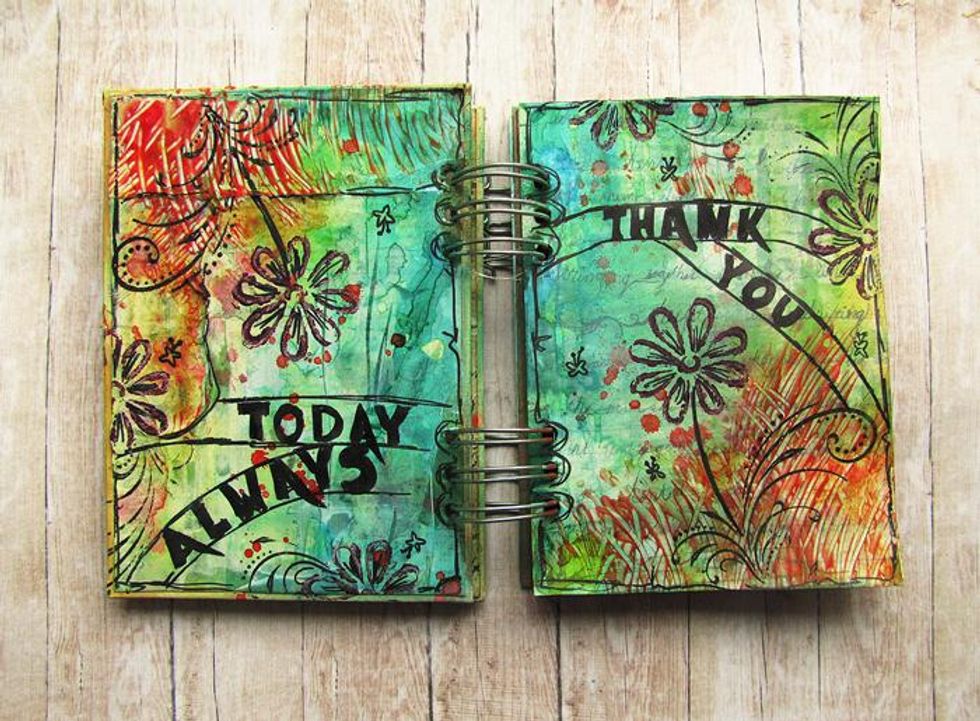 Start with two pages.I don't remember when I started painting this, but I know I applied some white gesso on Prima Epiphany paper & added some Peacock Feathers, Studio Blue, & Glorious AA Mists.
