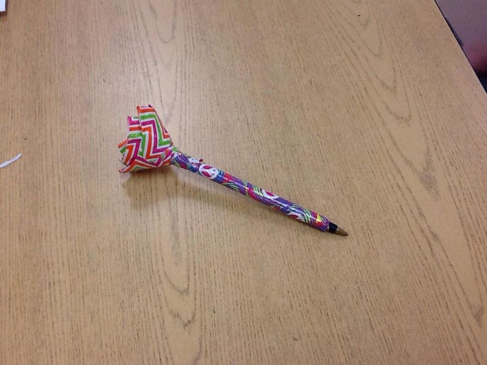 Measure how long the pen is from the end of the flower to where the part you write with is