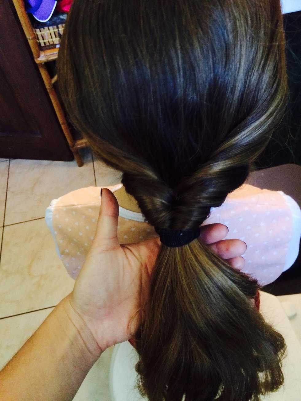 Make a pony tale, not tight.Separate de pony take.And that's it. If you want, you can make 2 or 3 turns to the hair. :)