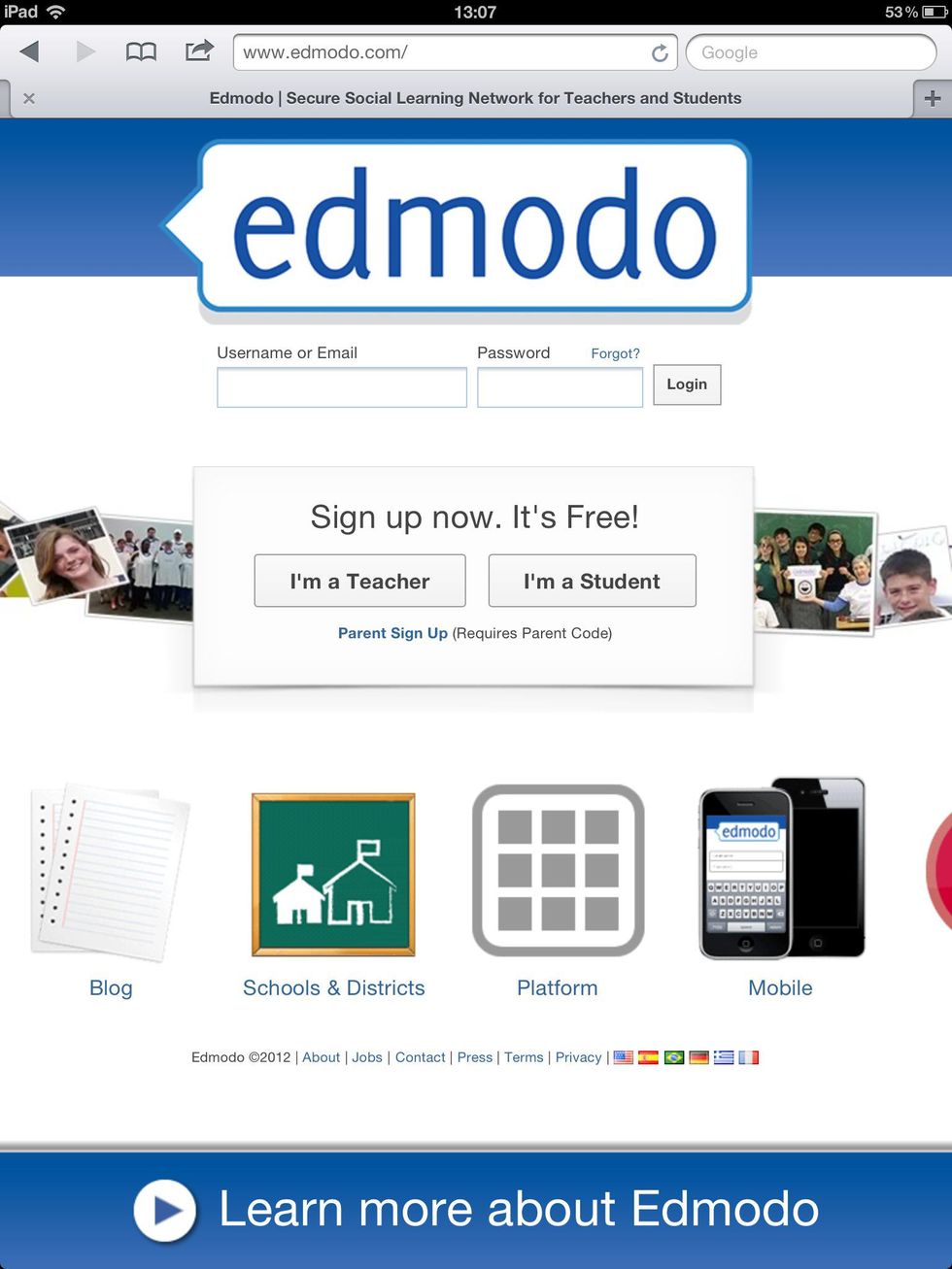 Go to Edmodo.com It's a good idea to bookmark the page so you find it easier each time you need it.