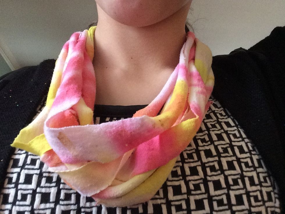 Adjust the tie's area around the loop, depending on how loose, or tight you want your scarf!