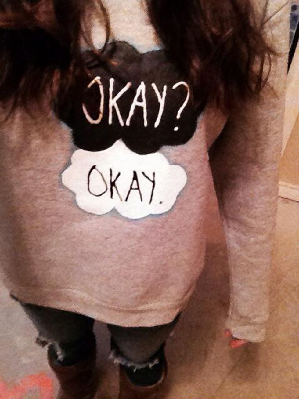 After the clouds dry grab your white puffy paint and write Okay? On the black cloud.