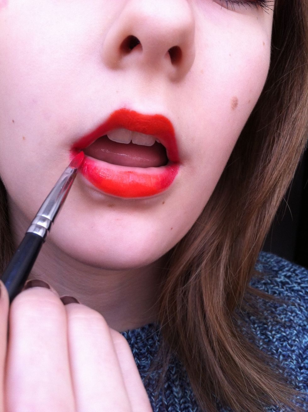 Choose a lighter/brighter lipstick, this is 'Orange Punch' by Collection 2000