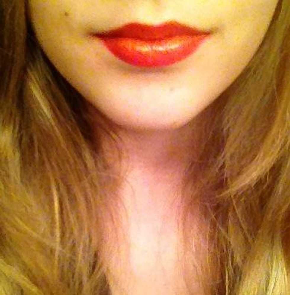 Get a red color and outline the lips