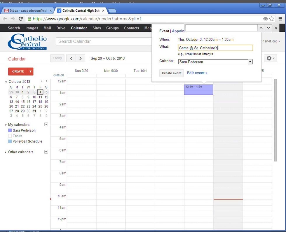 Lastly, you are able to add events to your calendar by clicking on a certain time.