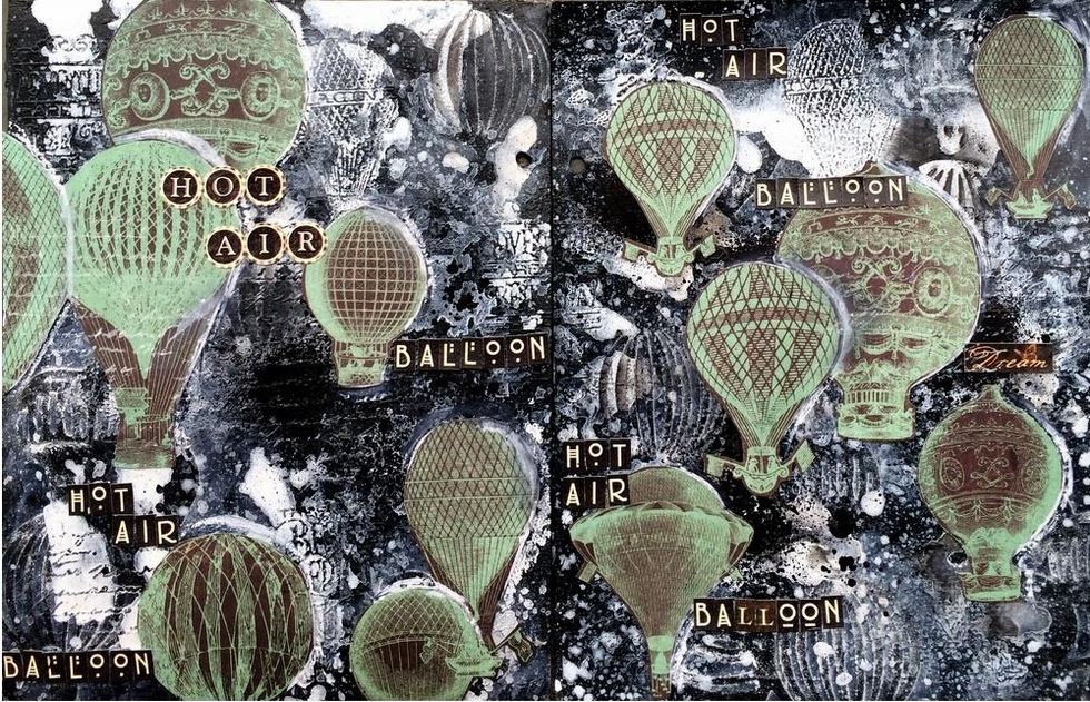 Glue down the balloons on the pages.