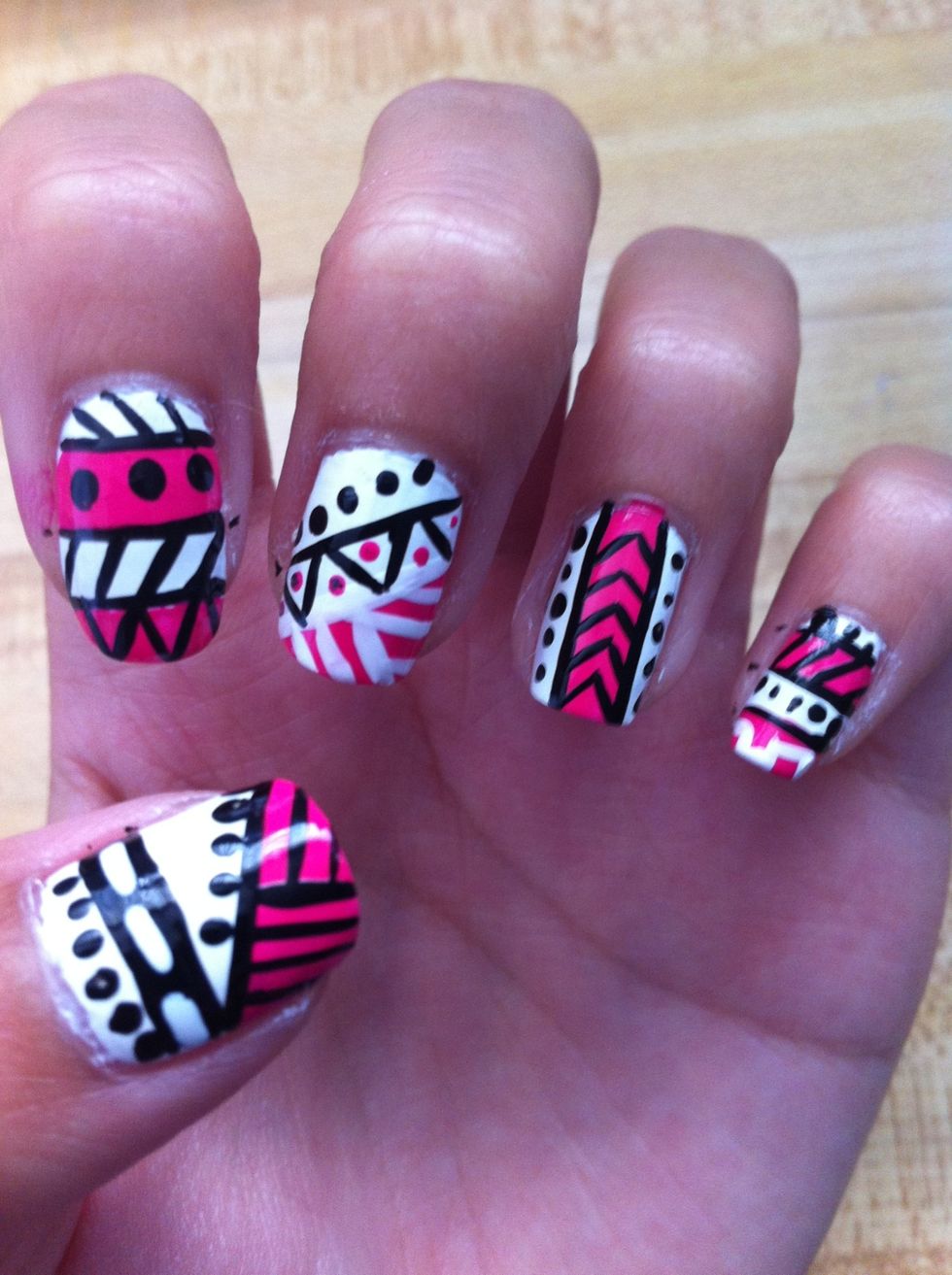 Using a black striper, outline the hot pink you've just made and create diagonal lines on top.