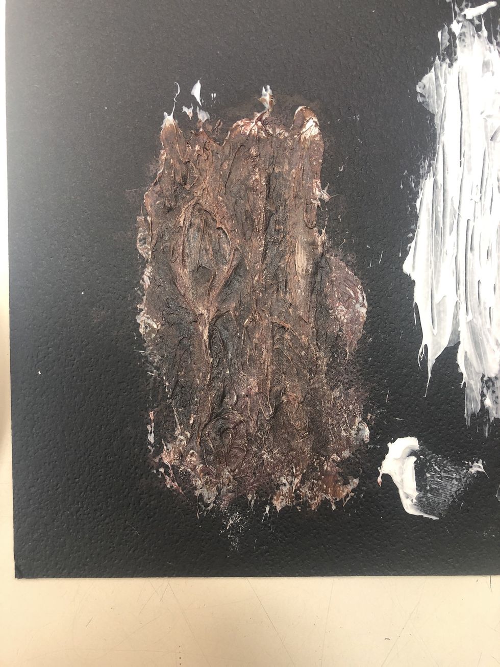 Using very thick layers of paste, create lines and dents similar to the pattern on a tree.