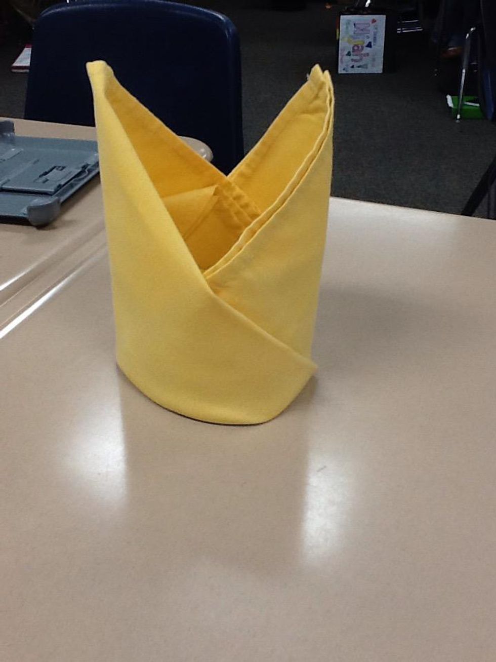 Stand the napkin up and push down the material in the center. This may take some fidgeting.