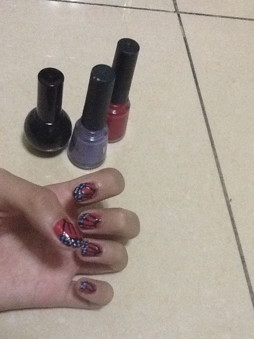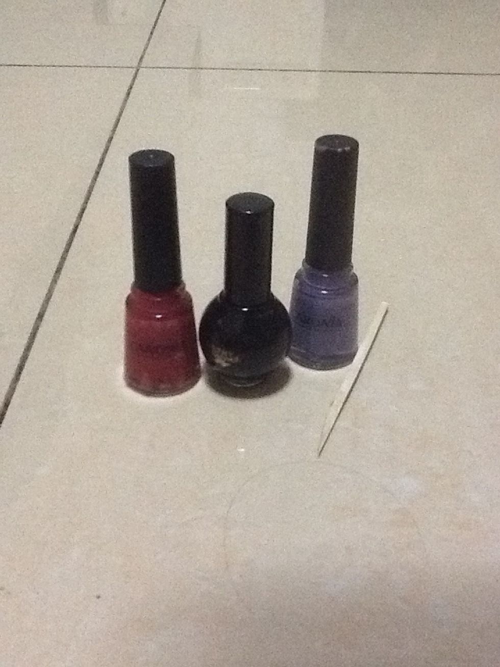 Materials: 3 color nail polish, Toothpick