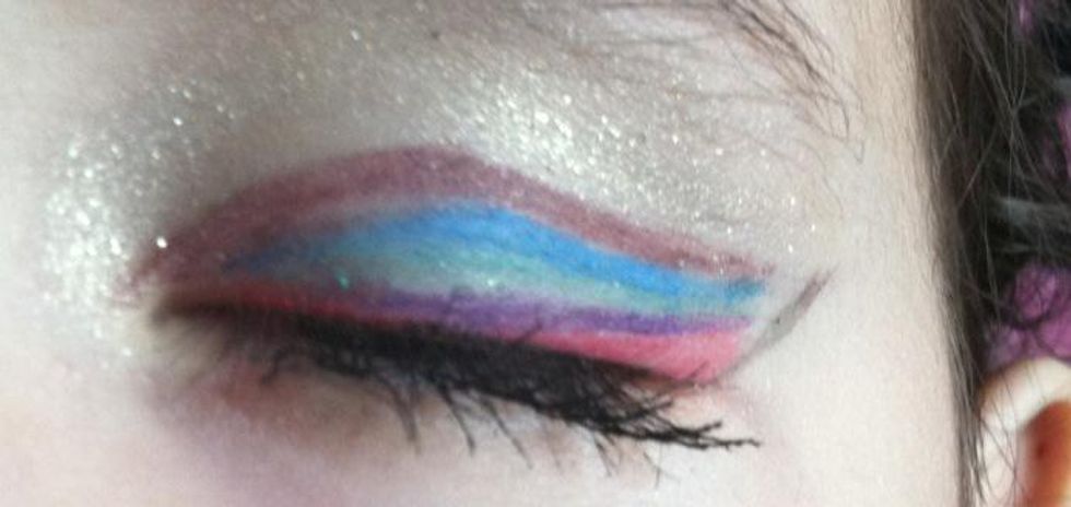 I think for young teens, they shouldn't use eyeshadows that are dark or smokey etc. I choose this fun spring or summery look. It's a rainbow of colored eyeshadow turned into eyeliners.