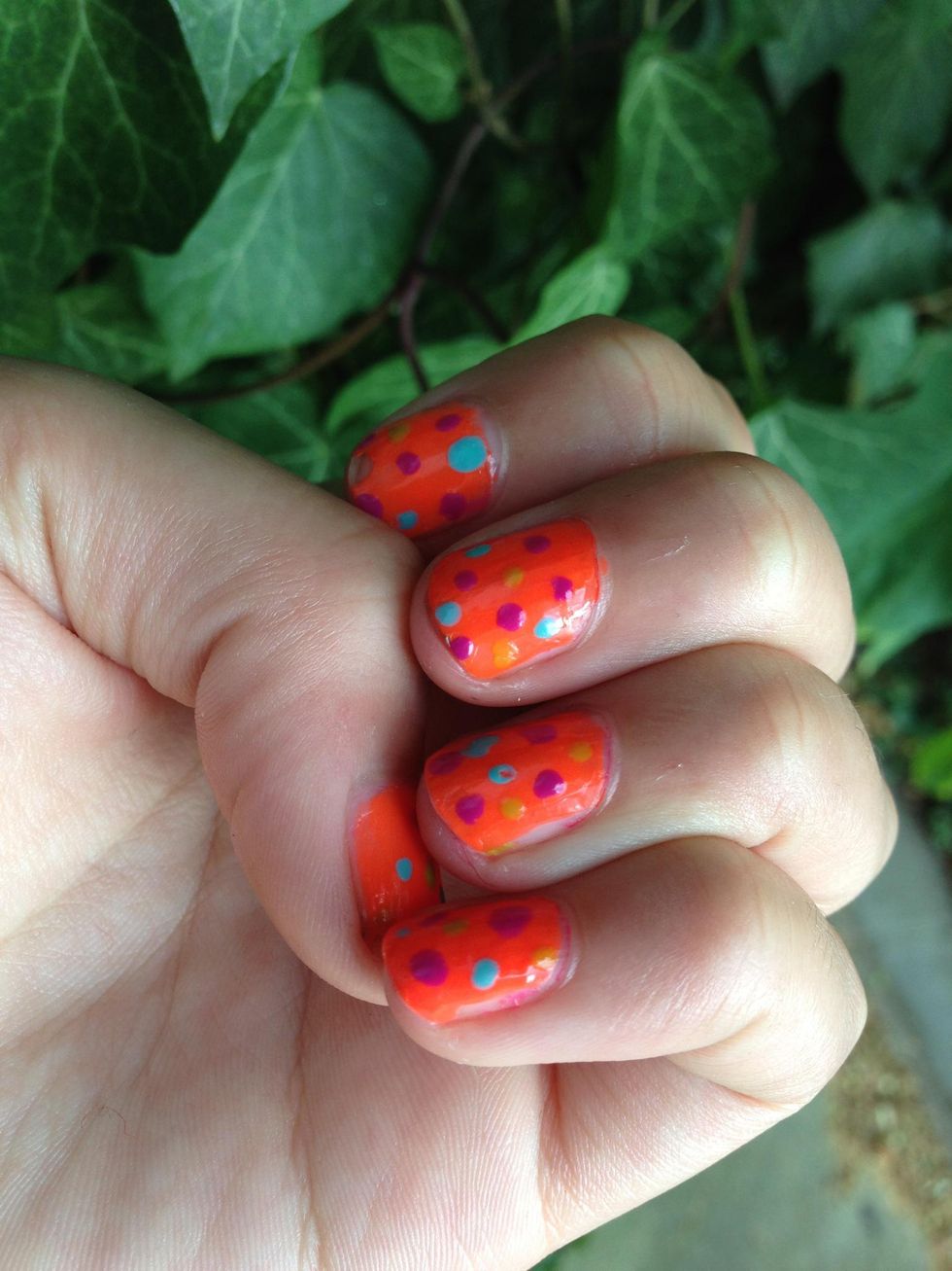 Pick 3 colours. I chose 'BYS - Kung fu blue' , 'Revlon - Plum Seduction' and 'BYS - Fatal Attraction.' Pull a bobby pin open and use the end as a dotting tool, have fun and create different dots!