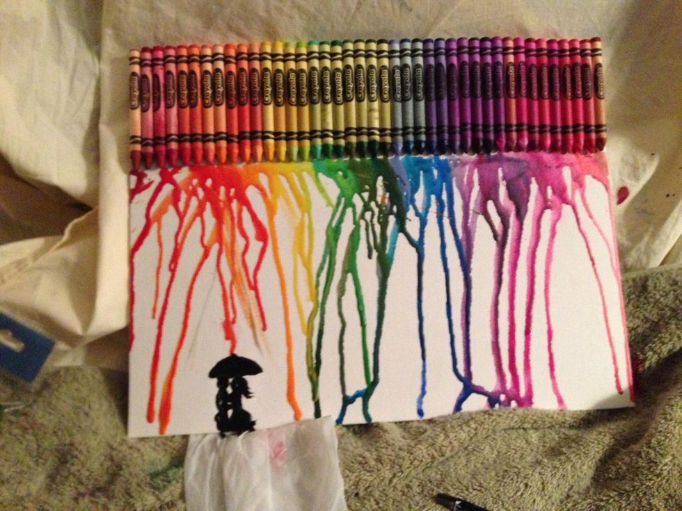 Using rubber cement, start to brush some glue onto your canvas. One at a time, start to place your crayons in the same order.