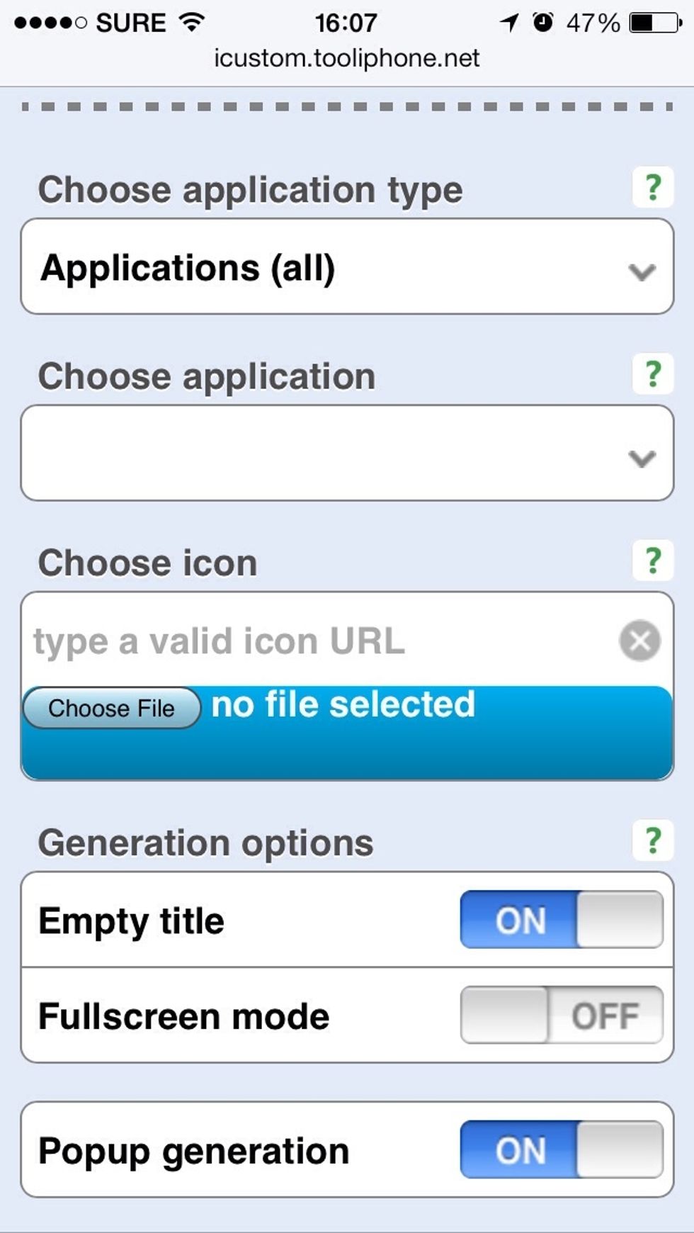 Choose application icon you want to create. And choose image from camera roll or web. >