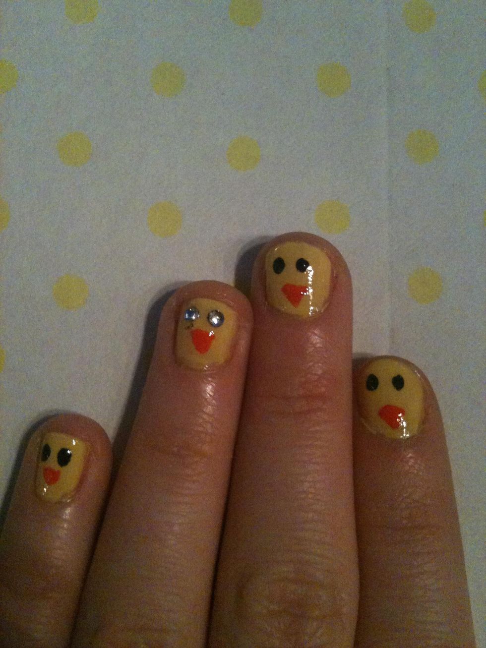With the eyes. One nail does not have eyes because that is the one I'm going to put rhinestones on