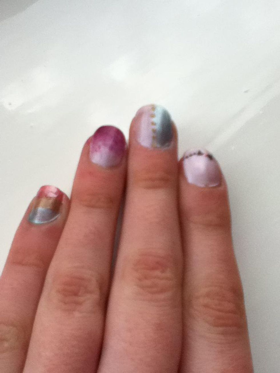Do the same for the bottom third, cover the top and middle with tape, paint blue and remove the tape. Clear up around the edges with nail varnish remover. Done!