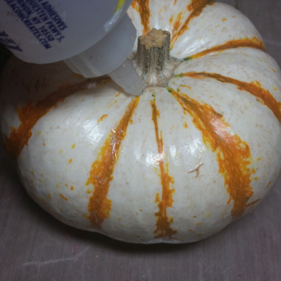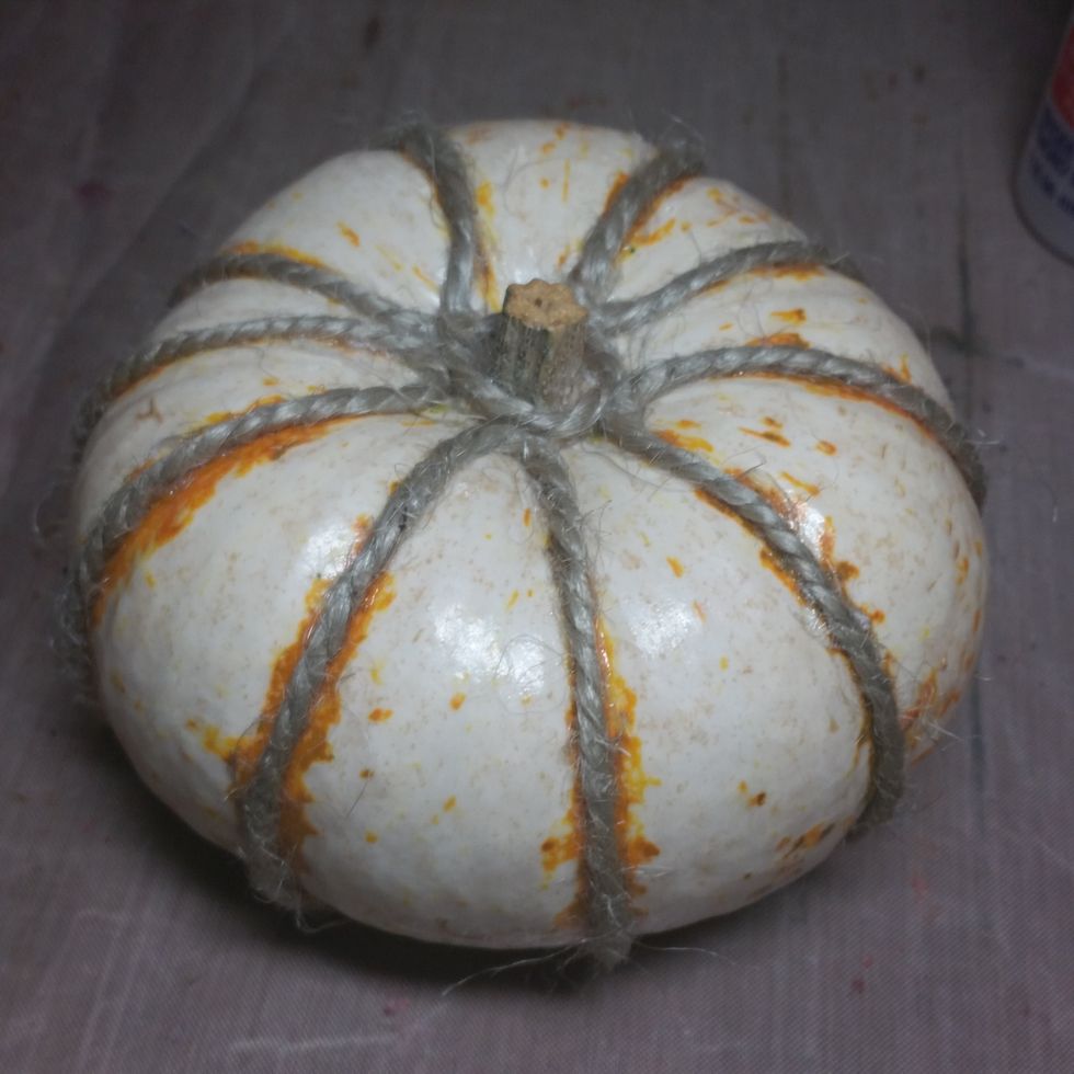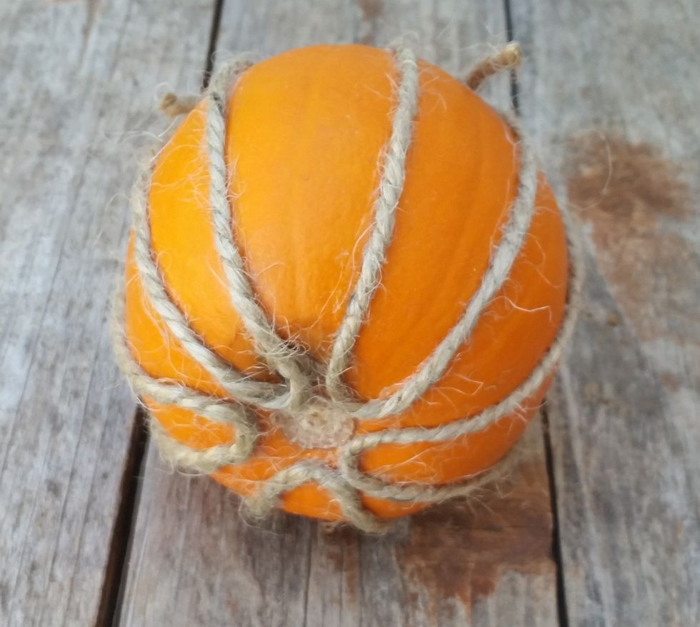 Add glue to the next groove and repeat the same procedure until the entire pumpkin had rope going up and down.