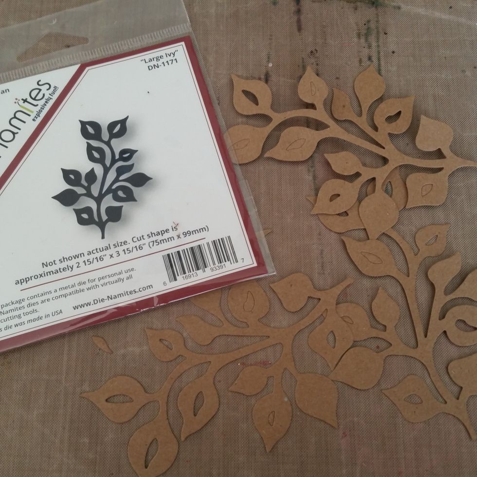 Using the Large Ivy die from Die~Namites Dies cut out 2-3 shapes from Canvas Home Brands Kraft cardstock.