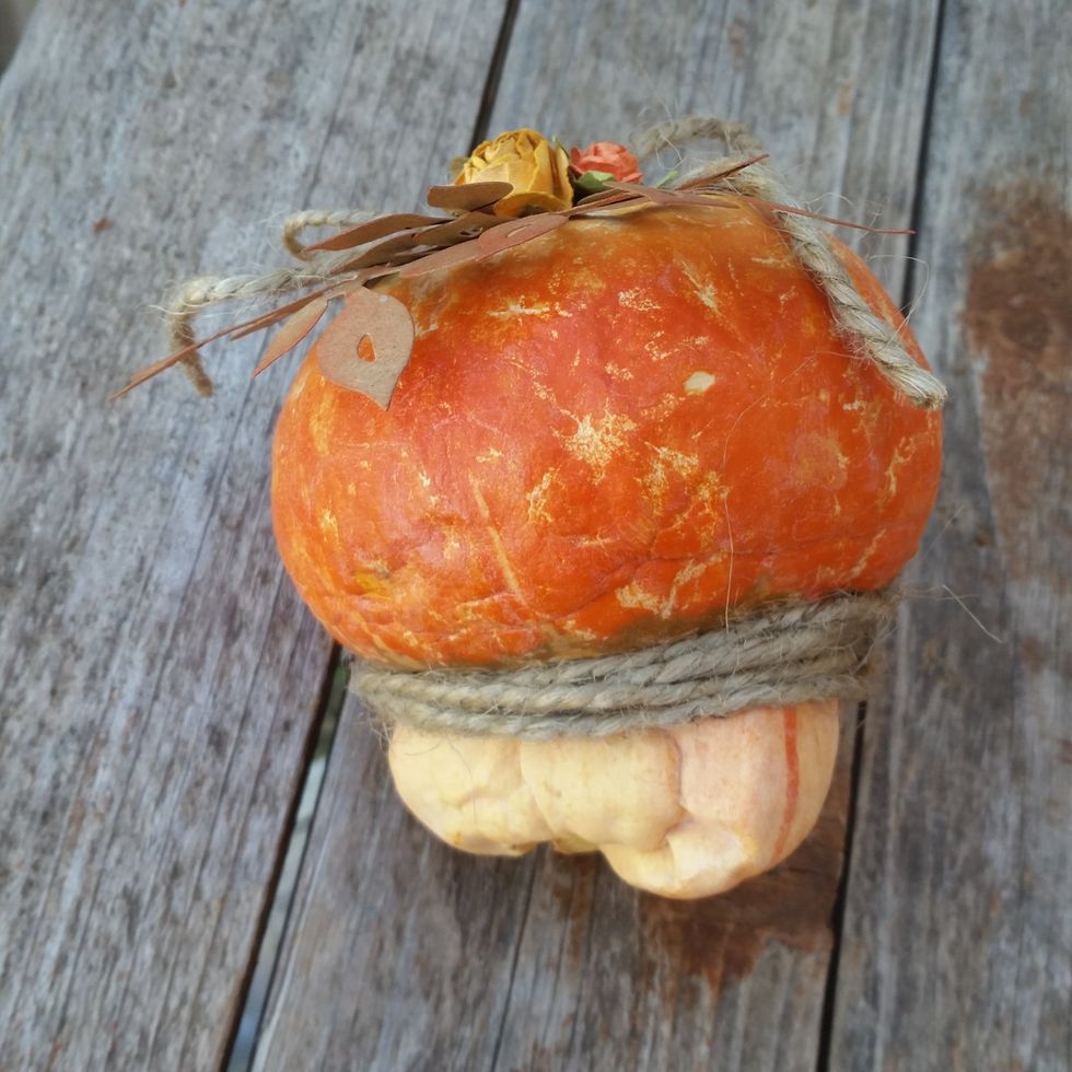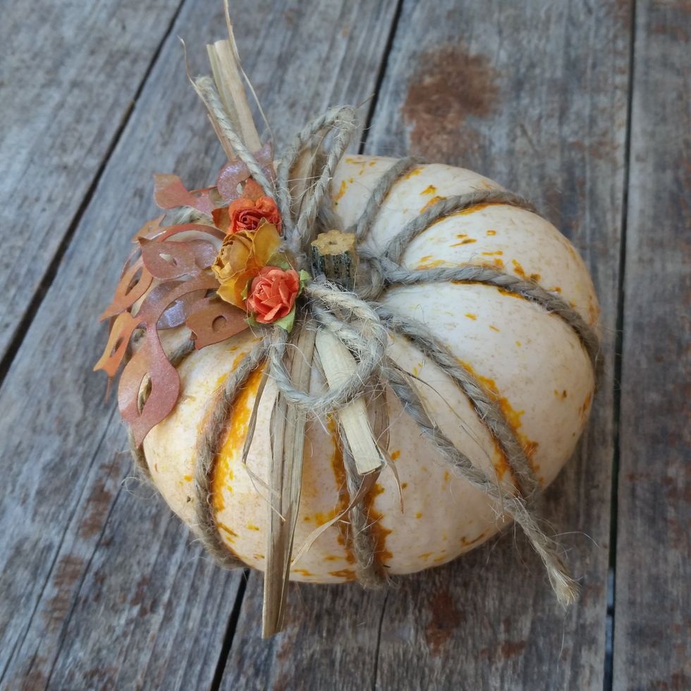 Start with a small pumpkin of your choice. I used pumpkins of all colors and shapes, but they fit in my hand.