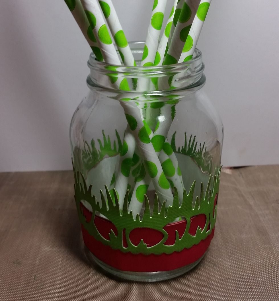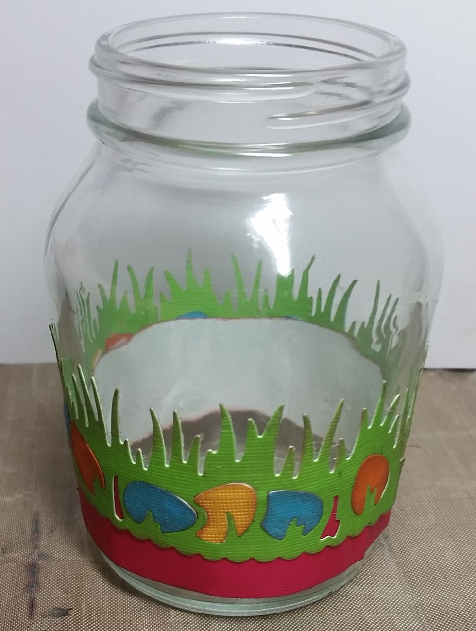 Two die cuts were just short of wrapping around the jar, so i cut a section of the 3rd die cut and filled in the gap.