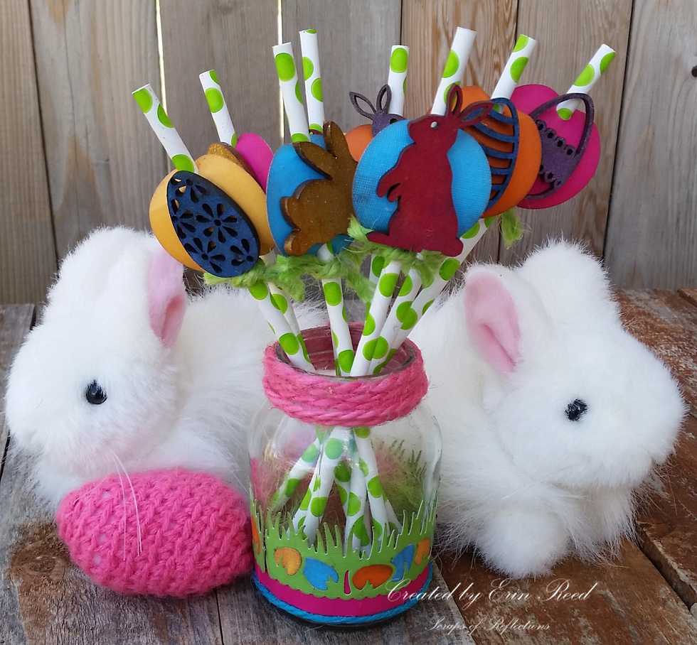 Wood products used are from Unique Laser Designs in Easter Eggs (6 pc set), Bunnies ( 6 pc set, used med size in project), and Rabbits (2 pc set).