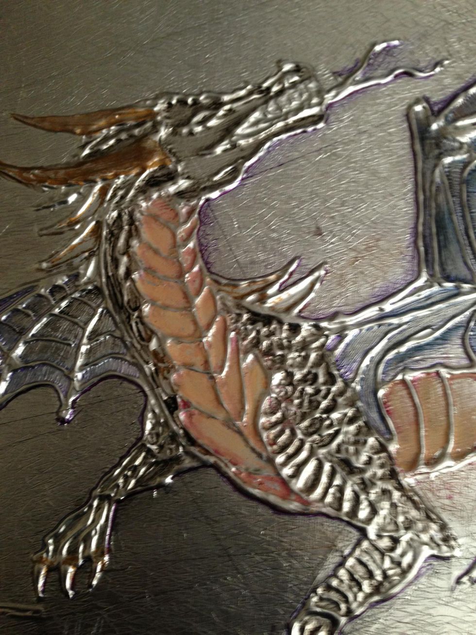Pencil drawing of a dragon is ruffed in on plywood. I used the smooth side for the application.