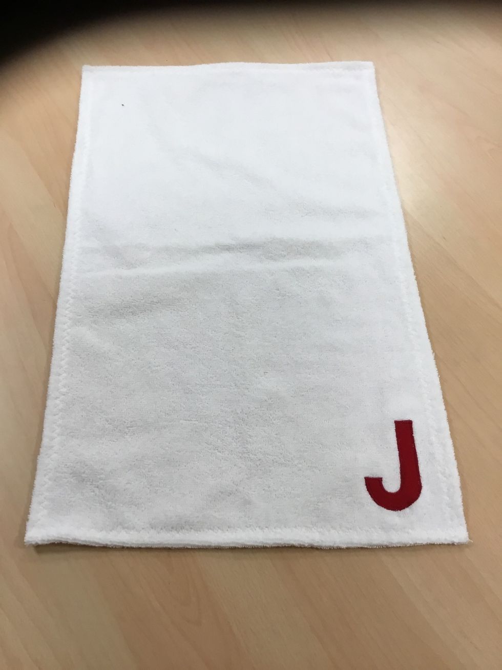 Ta fram symaskinen och trä den med sytråd i samma färg som handduken. Välj söm nr 5, trestegssicksack.