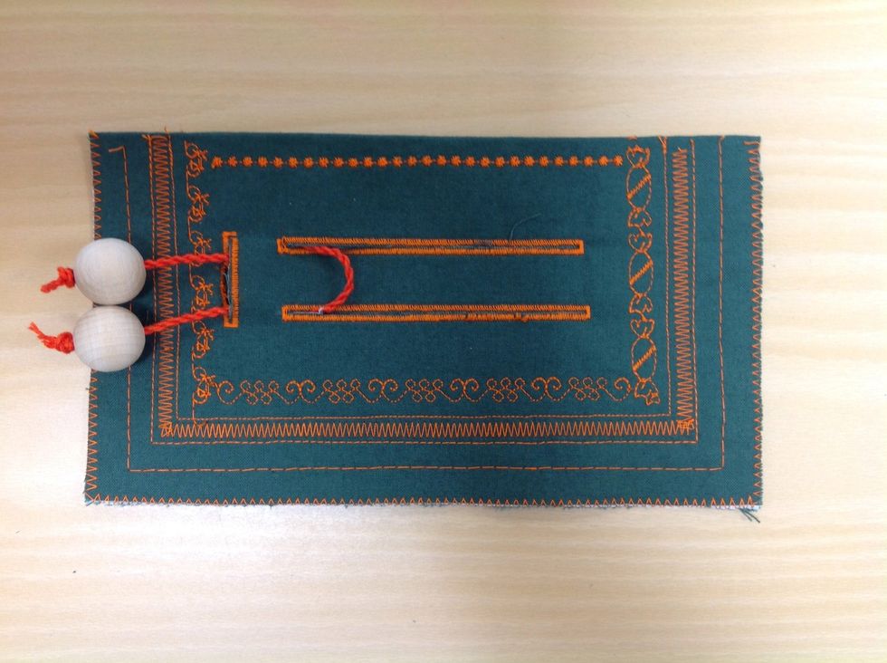 Sy raksöm 2cm (20mm) från kanten på tre sidor. Stygnlängd 2,5 mm. Backa och fäst tråden i början och i slutet.